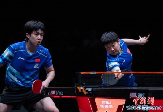 12月13日晚,全国乒乓球行状大定约(WTT)香港总决赛混双决赛在香港体育馆举行,中国组合王楚钦/孙颖莎以0:3不敌韩国组合林钟勋/申裕斌,赢得亚军。图为孙颖莎(右)和王楚钦在比赛中回球。 中新社记者 侯宇 摄